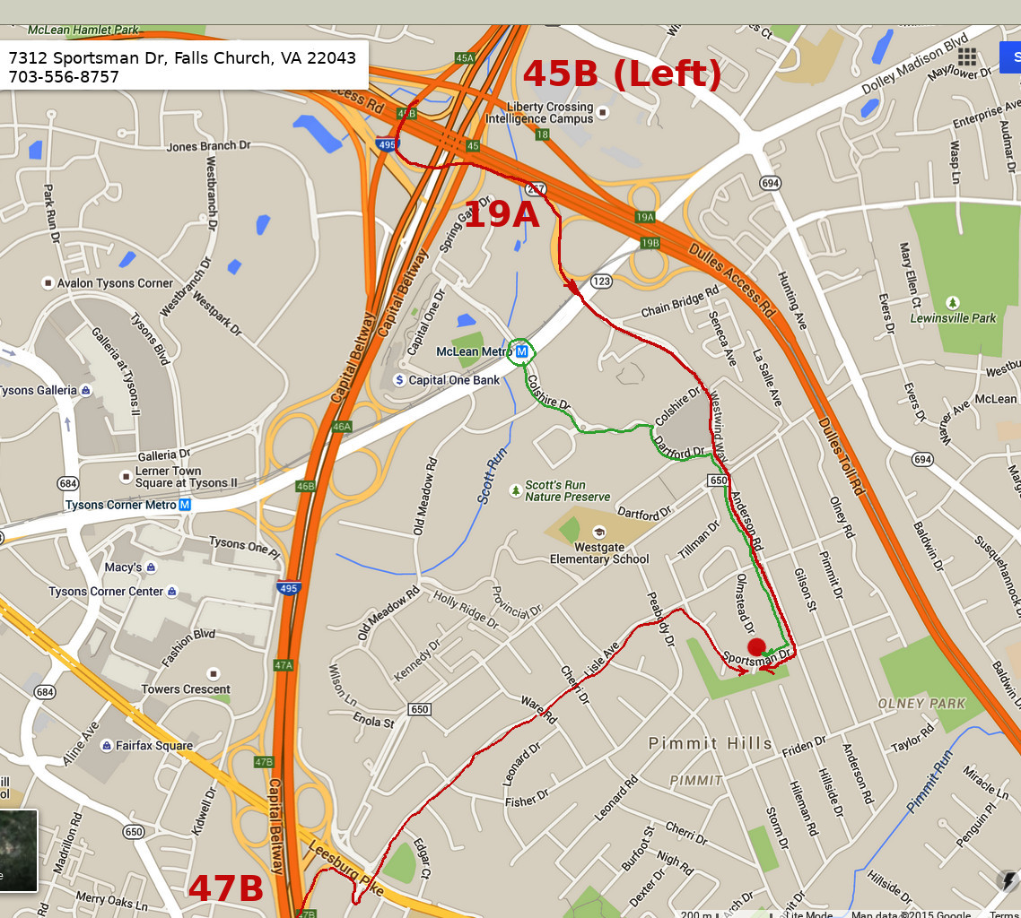 - From Beltway, from south. Take exit 47B towards Route 7.